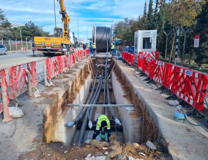 Mit unserem erfahrenen technischen Team im Bereich Erdkabel und unter Einsatz moderner Maschinen und Ausrüstungen werden schlüsselfertige Projekte für Erdkabel mit Spannungsebenen von 36 kV, 170 kV und 400 kV installiert.